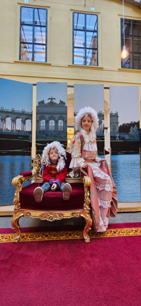 – Kinder Museum, un muzeu special pentru copii, ce ține de palatul Schonbrun. A fost fascinant pentru ei – au avut posibilitatea să se îmbrace în haine de epocă, să poarte peruci (și adultii se pot îmbrăca și costuma), fiecare cameră avea o tematică: zonă de joacă, zonă de bucătărie, zonă de aranjat și un tobogan simpatic, pe care l-au încercat de mai multe ori.