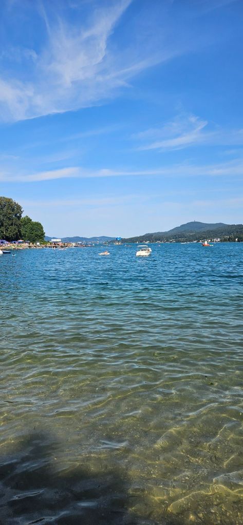Am coborât usor de pe autostrada și în câteva minute lacul Worthersee ne-a făcut să simțim acel vibe de vacanță.