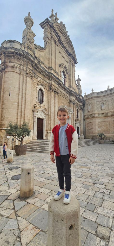 De aici am mers în Monopoli, care ne-a plăcut mai mult. A fost cel mai curat oraș din cele vizitate. Plimbarea pe malul marii, unde valurile se izbeau de pietrele uriașe au făcut deliciul copiilor.