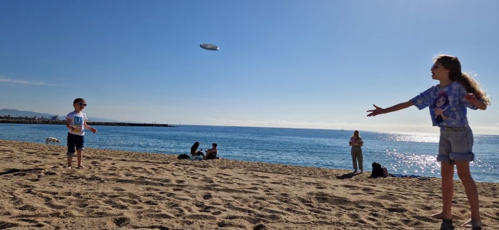– Plaja din Barcelona. Bucuria copiilor și a mea (recunosc). O joacă în nisip, puțin în apă și un mic dejun pe plajă.