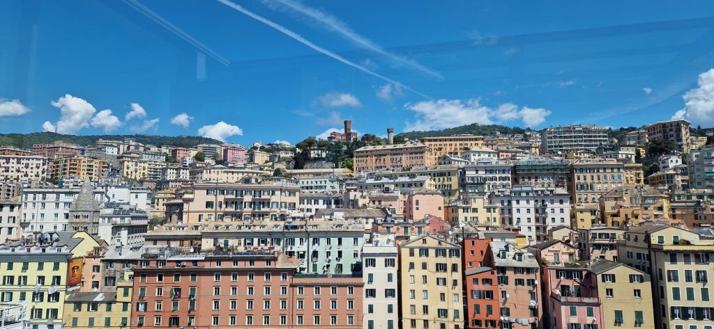 Genova este un oraș port, te impresionează prin clădirile aflate pe coline și agitația din trafic (străduțe înguste, mulți oameni folosesc ca și mijloc de transport scuterul și circula destul de agresiv).