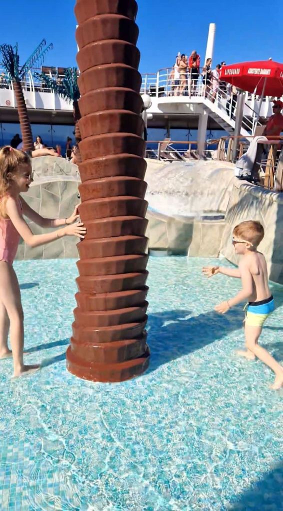 În acesta zi am reușit să explorăm vasul. Finally am dormit toți puțin mai mult și ne-am relaxat la piscina, pe terenul de basket / fotbal, am admirat marea și am stat la plajă.